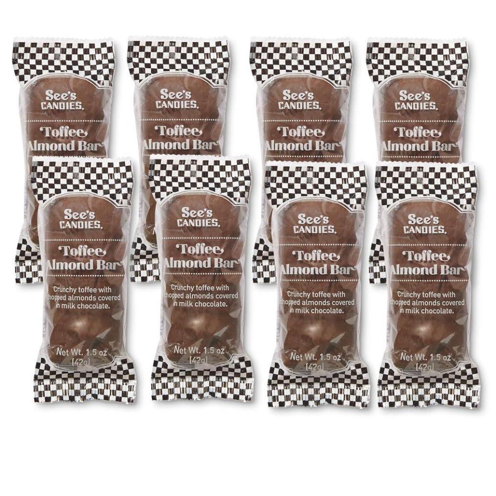 See’s Candies 12 oz Milk Toffee Almond Bars (8 Individually Wrapped Bars)