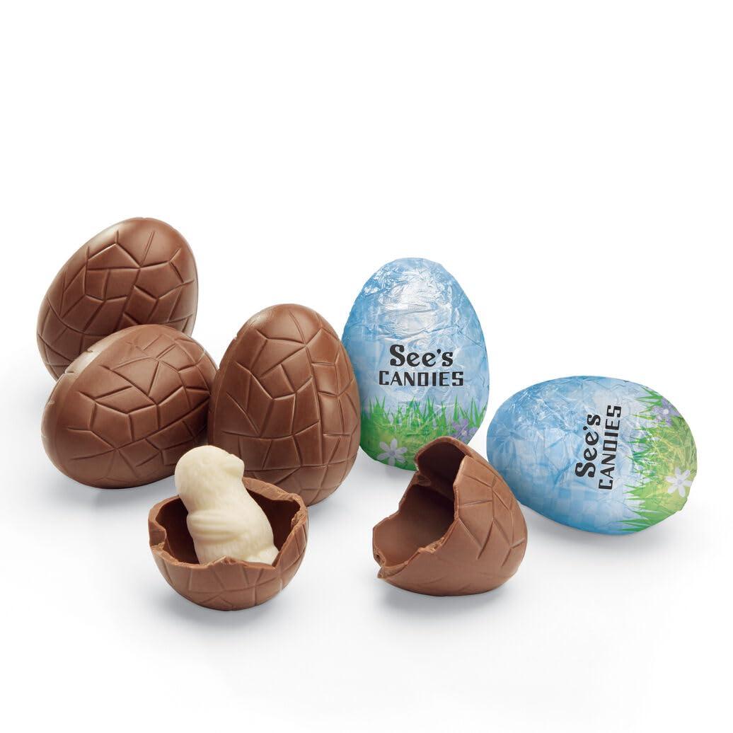 Time to get crackin’. Inside each rich milk chocolate egg hides a tasty surprise: a cute solid white chocolate chick. Includes 6 individually wrapped 0.9 oz pieces per pack.